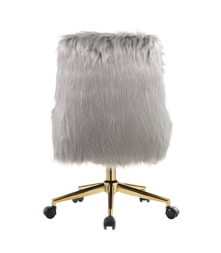 Sink into the plushness of our padded seat and back, upholstered in irresistibly soft faux fur. Did we mention it features a generous 4-inch cushion? This chair isn't just a place to sit; it's a cozy retreat that adds a touch of opulence to any room. In addition, this chair still has the functionality of any modern office chair such as 360 degree swivel and an adjustable lift.