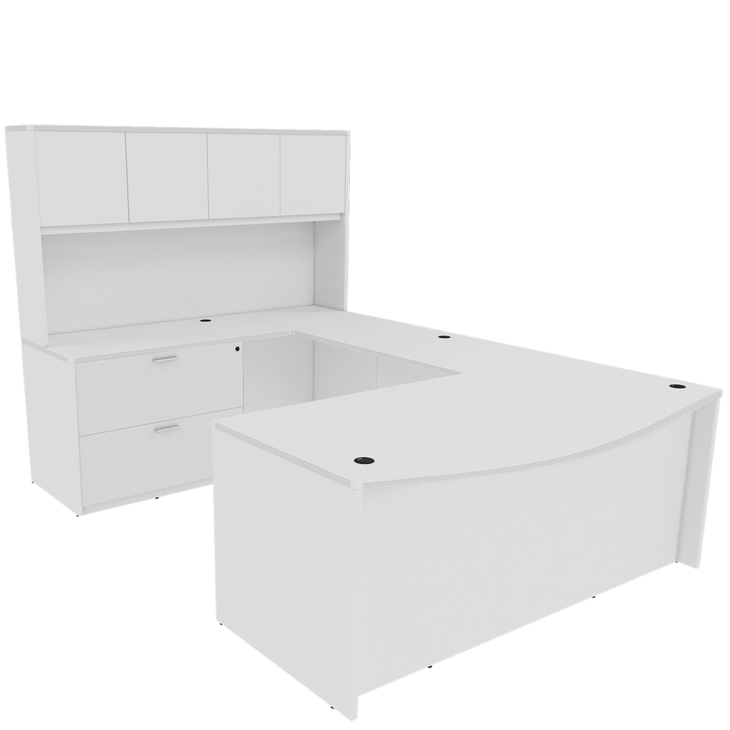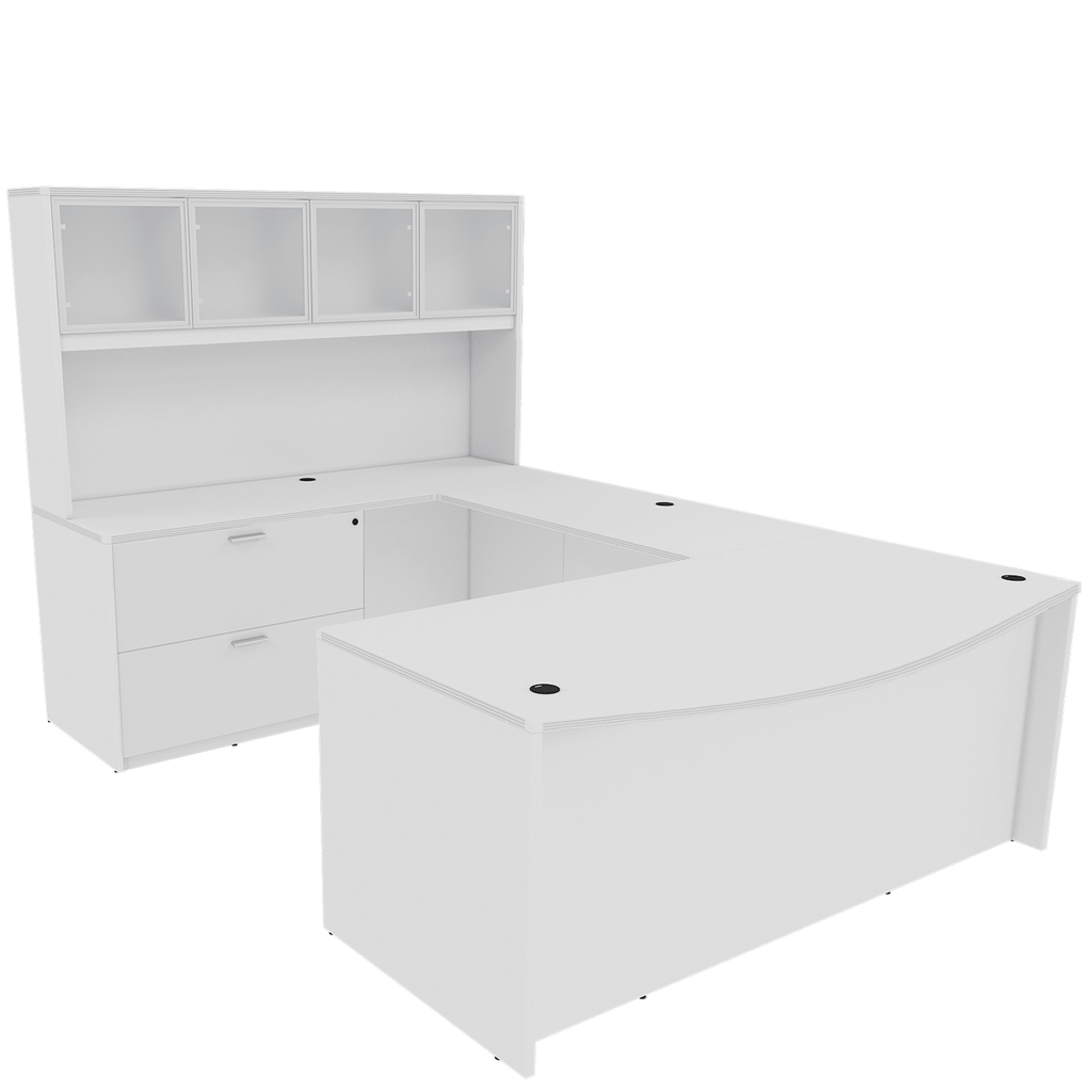 Kai U-Shaped Bow Front Desk with Full Lateral Pedestal & 4 Door Hutch