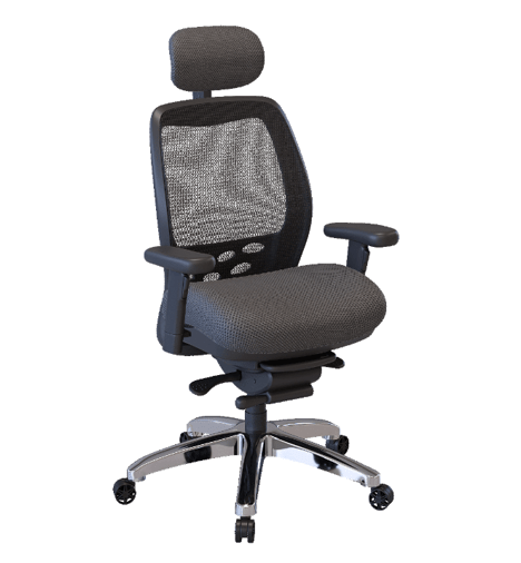 - Unlimited Functionality - It has a synchronous knee-tilt swivel mechanism with built-in seat slide depth adjuster, infinite position tilt-lock, pneumatic seat height adjustment and side tension control. The armrests move up and down & in and out, complete with lockable swivel pads.