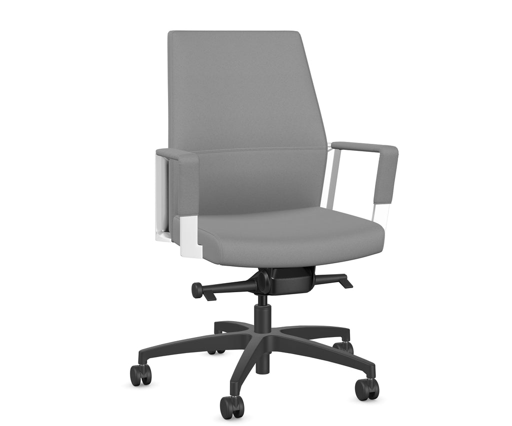 Classic lines combine with modern materials to create a look that is welcoming at all angles. Intersecting materials create visual interest at 360-degrees. A highly durable all-steel frame allows the back to flex to support lengthier conversations and a more comfortable sitting experience. Our offering comes with aluminum loop arms finished in fabric matching arm wraps.