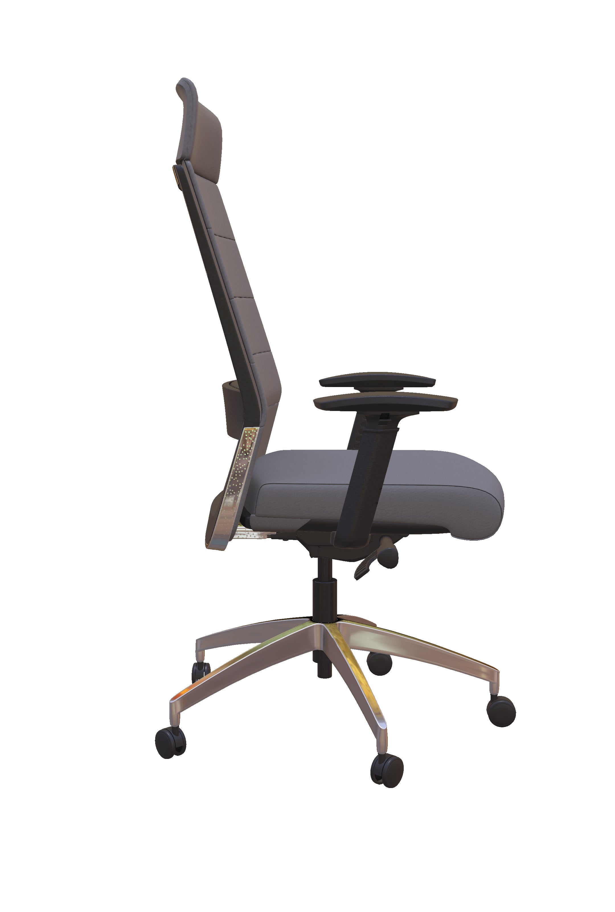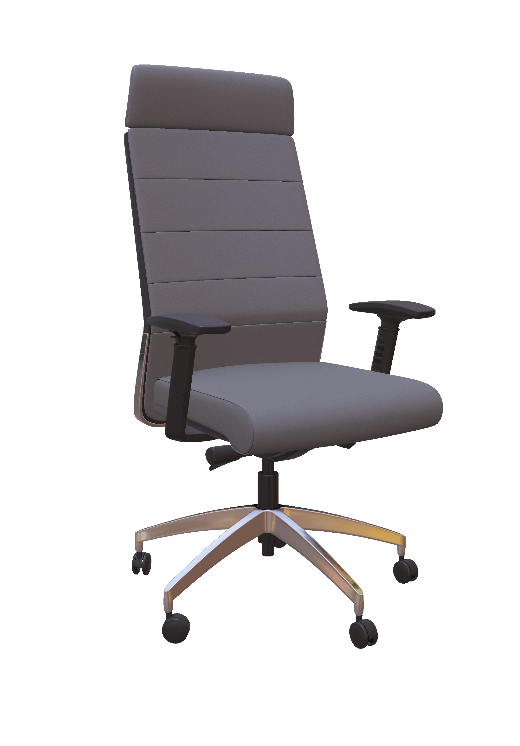 Elevate your home office with the Freeride Executive High-back Leather Office Chair. This office chair perfectly blends durability and ergonomics, creating a high-performing and comfortable work environment. Its quilted upholstered back and aluminum base provide a modern executive look. The adjustable lumbar support and synchro tilt mechanism allow for improved posture while breezing through your tasks at work.
