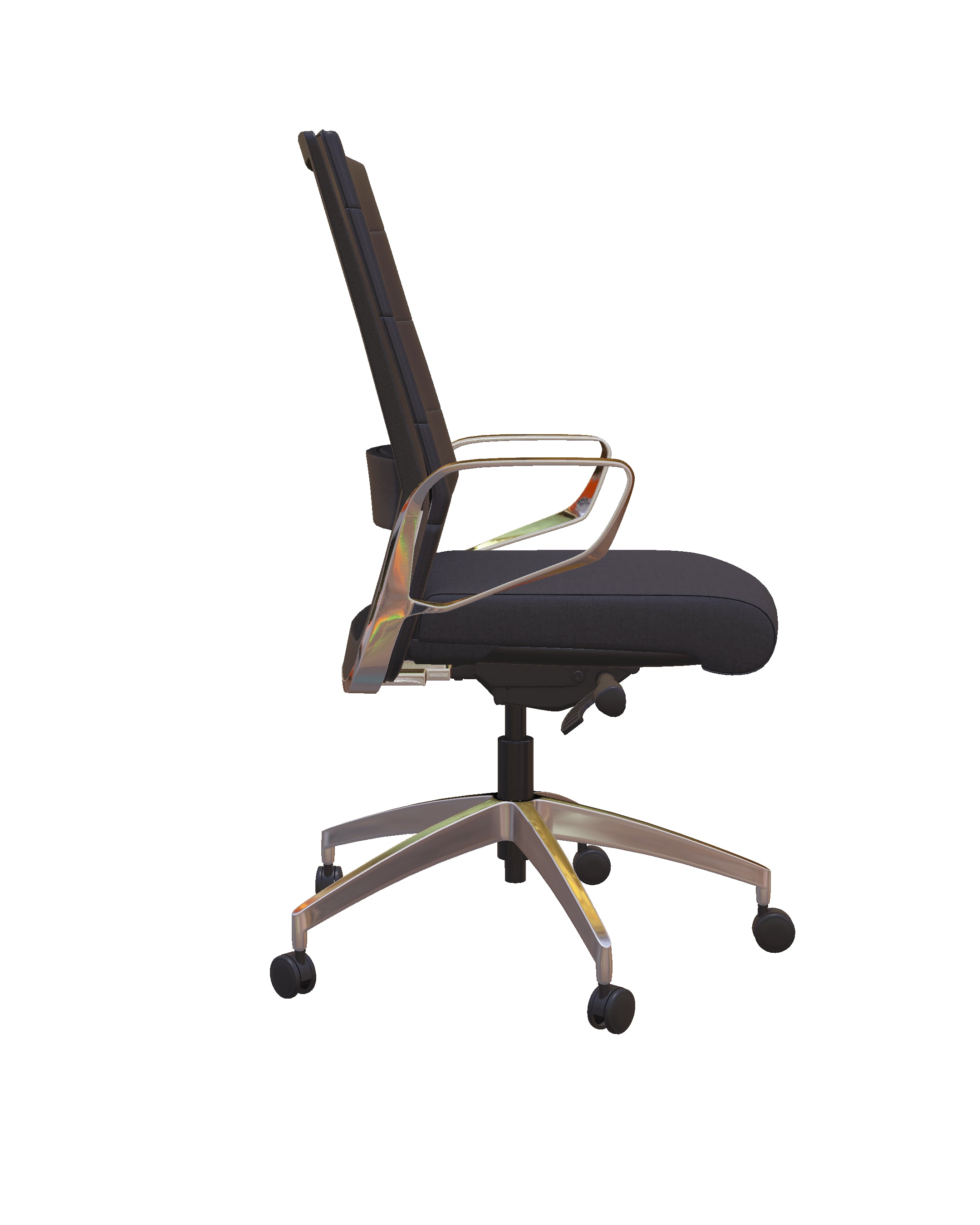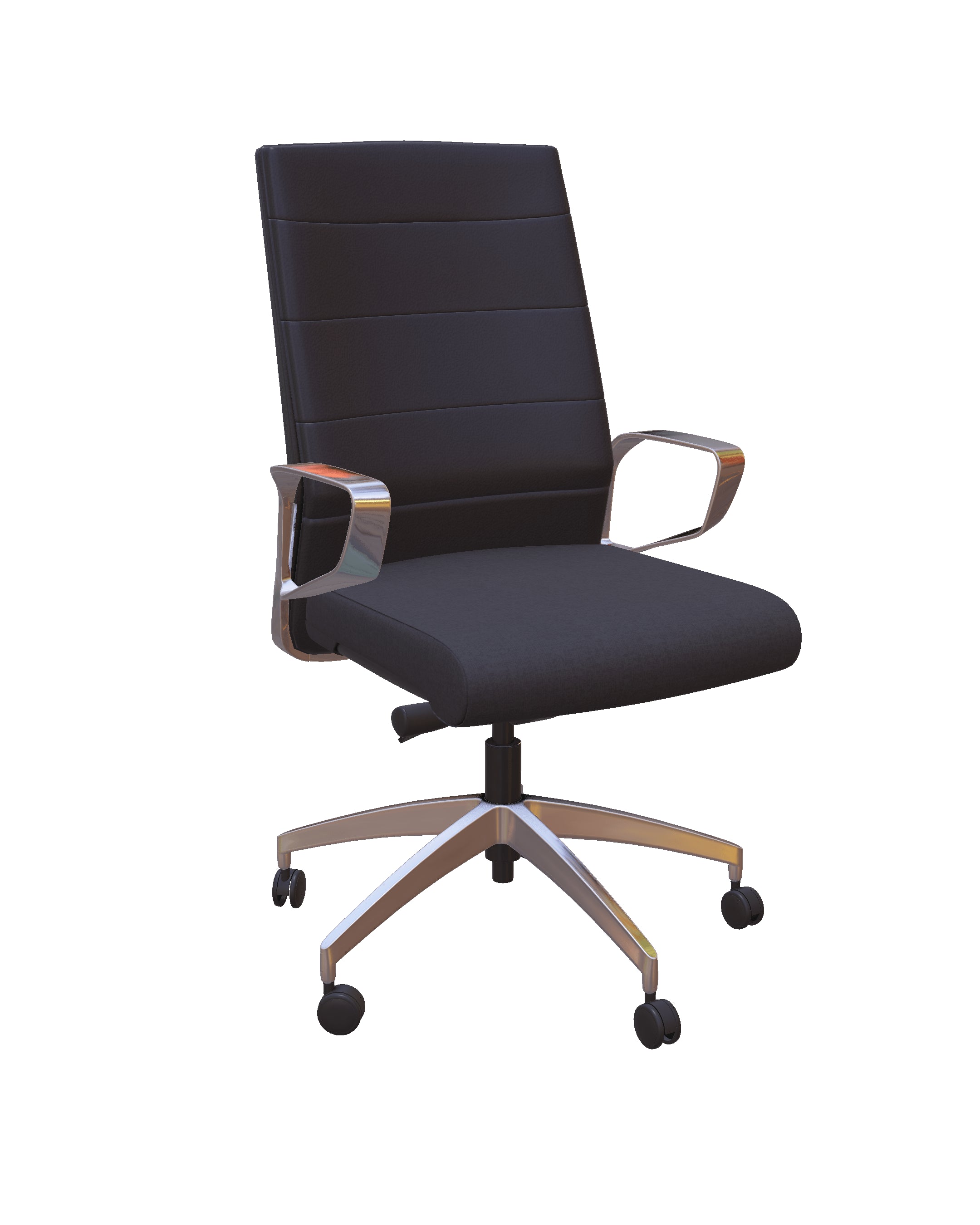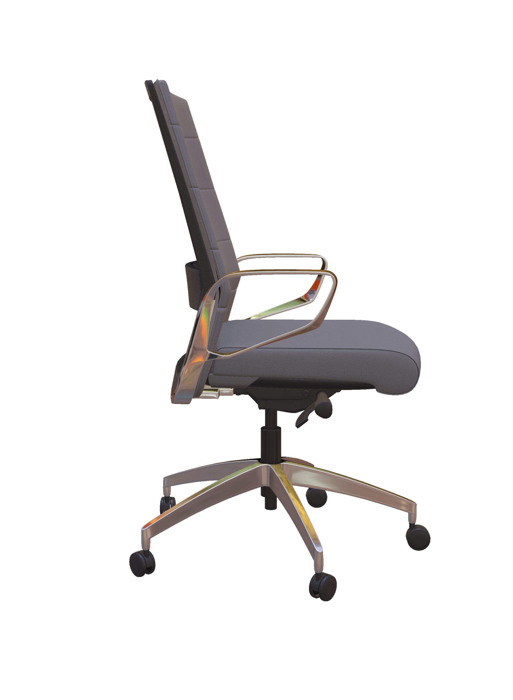 Elevate your home office or conference room with the Freeride Executive Leather Office Chair. This office chair perfectly blends luxury and ergonomics, creating a high-performing and stylish work environment. Its quilted upholstered back and polished aluminum arms give a sleek, modern executive look. The adjustable lumbar support and synchro tilt mechanism allow for improved posture while sitting through meetings.