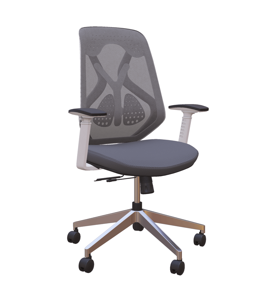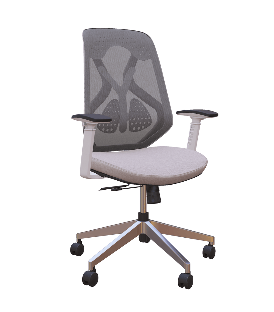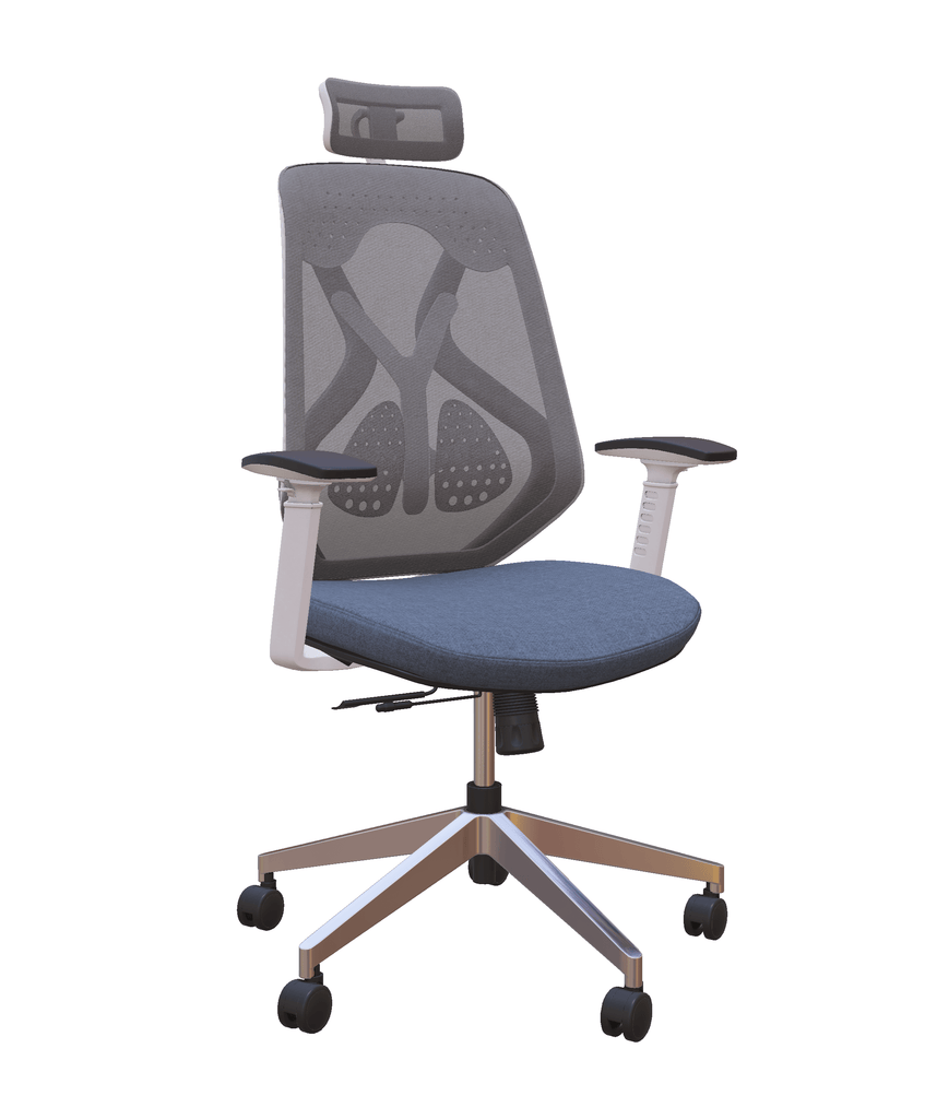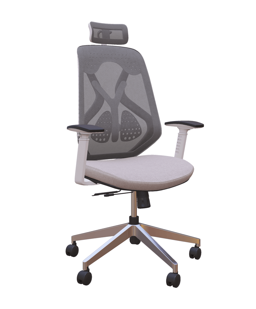 Outfit your office space with the Roswell Ergonomic Office Chair finished in White and Grey to create a design-focused ergonomic work environment. It features a seat slider that allows people of all heights to sit comfortably. The adjustable lumbar support and synchro tilt mechanism allow for improved posture while sitting. This specific build boasts an elegant 5 star base finished in aluminum that adds style to any office. The mesh headrest option on this model is an excellent choice as it not only makes a world of difference in comfort but, it also looks make the Roswell look even more stunning.
